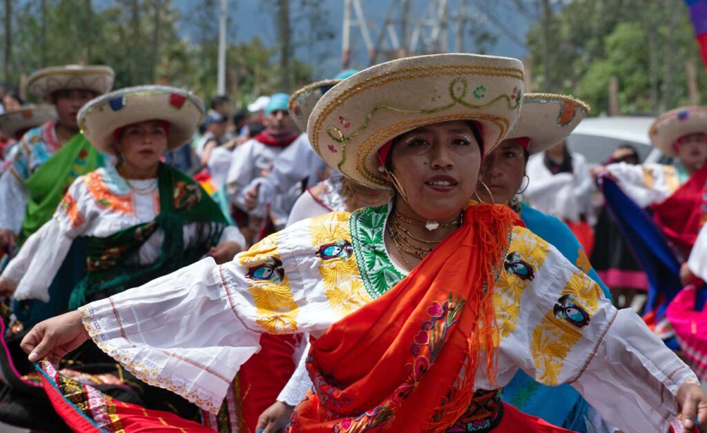 Sobre una pequeña colina, con la música del Inti Raymi y el resguardo indígena de Panam al fondo, Alexandra Puetate, perteneciente a esta comunidad, relata cómo la crisis climática ha transformado el territorio: la deforestación, el cambio de temperaturas y la pérdida de fauna y semillas han afectado los cultivos ancestrales. “Frente a ello, se protegen las semillas nativas, se mantiene la chagra, lugar donde están los cultivos, alimentos y plantas medicinales, se conservan los caminos milenarios que aún sirven para el intercambio de productos entre Colombia y Ecuador”, expresa.
